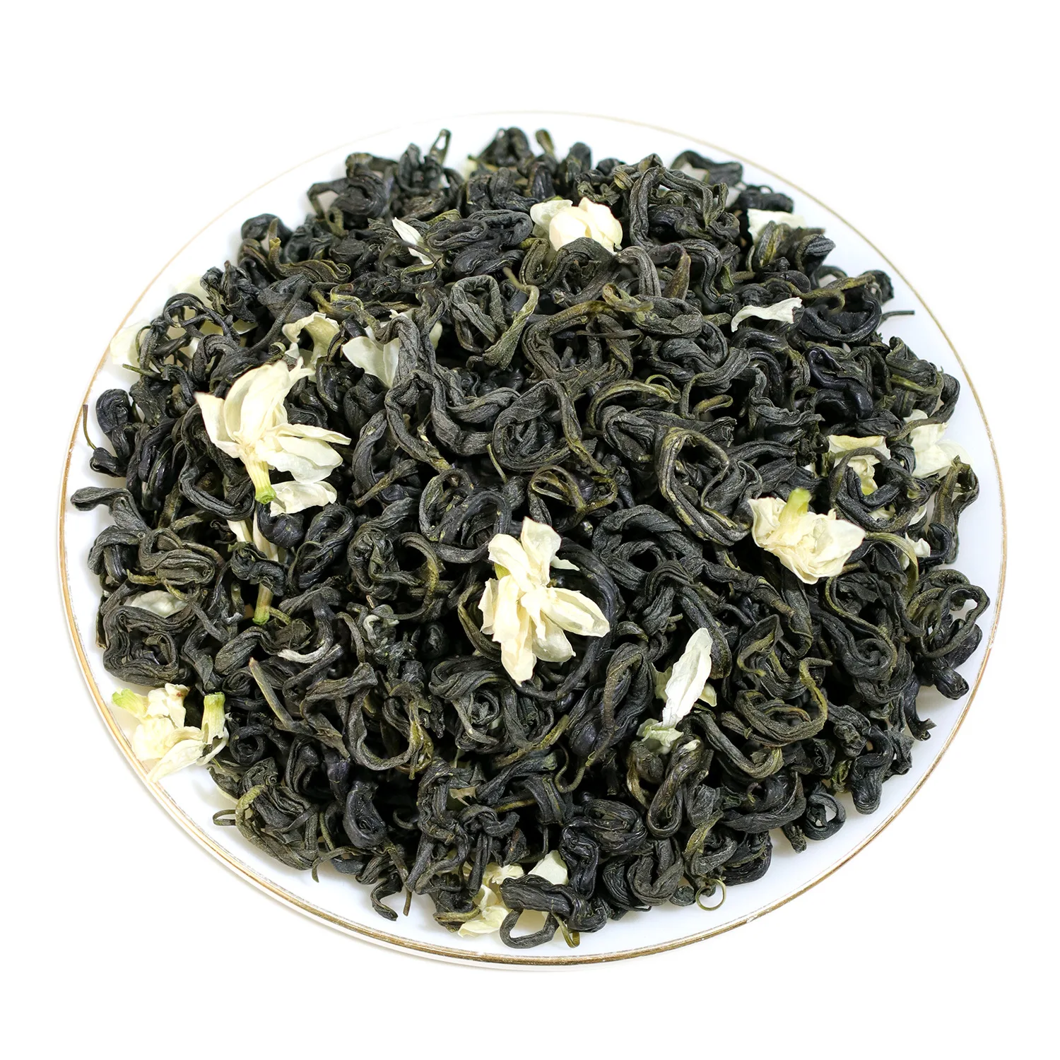 Shape: The tea strips are tight, even, elegant, curled and glossy; the jasmine flowers are pale yellow and bright.